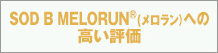 MELORUN®は、高いSOD活性を持つ機能性素材で、原料は非GMOの仏カンタロープ・メロンの特定品種だ。 活性酸素の無害化にSODが注目されるのは、上述のように体内の抗酸化防御システムの中でも頂点に位置する一次性抗酸化物だからだ。 一方、グルタチオンやCoQ10、カロテノイド、ビタミンC,A,Eなどの二次性抗酸化物はそもそも体内で産生されず、その効率は1対1であり、活性酸素が増えると圧倒されやすくなる。 一次性抗酸化物と比較するとその効率は100万分の1以下ともいわれる。