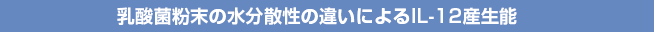 マウスの脾臓細胞にナノ型乳酸菌及び一般的な加熱乳酸菌原料2種をそれぞれ水に溶かした懸濁液をパイエル板上のM細胞と同程度のサイズである5μmで濾過し、その後培養したもののIL-12を測定した。その結果、菌が凝集していないナノ型乳酸菌は他の乳酸菌群よりも多く濾過されるとともに、高いIL-12の活性を示した。