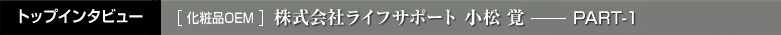 26歳の時にはすでに60名もの助手を抱えるリーダーとして、製薬会社の研究・開発に没頭していた小松氏は、 健康食品メーカーに転職したのち30歳で個人事業を立ち上げ、31歳に株式会社ライフサポート設立。化粧品・健康 食品等のOEM受託ビジネスを中心に、オリジナル商品の開発、企画プロデュースと猛スピードで突進してきた。 2010年に始動する大型プロジェクトなどを含め、製品開発のコンセプトや小松氏のビジョンについて話を伺った。