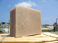 パーム油・オリーブオイル・ココナツオイルの基本オイルに「沖縄産海洋深層水」「沖縄産素材」を配合し、ホホバオイルも贅沢に配合した石けん。もちろん、オイルや素材は厳選した食用グレードの物と「自家栽培」の薬草を使用しました。