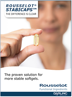 研究の結果、ルスロ社は新しいゼラチンStabiCaps™を開発しました。これは、ソフトカプセル皮膜中のクロスリンクを防ぐことを特異的な目的とし、カプセルの崩壊性を良好に維持する為のものです。